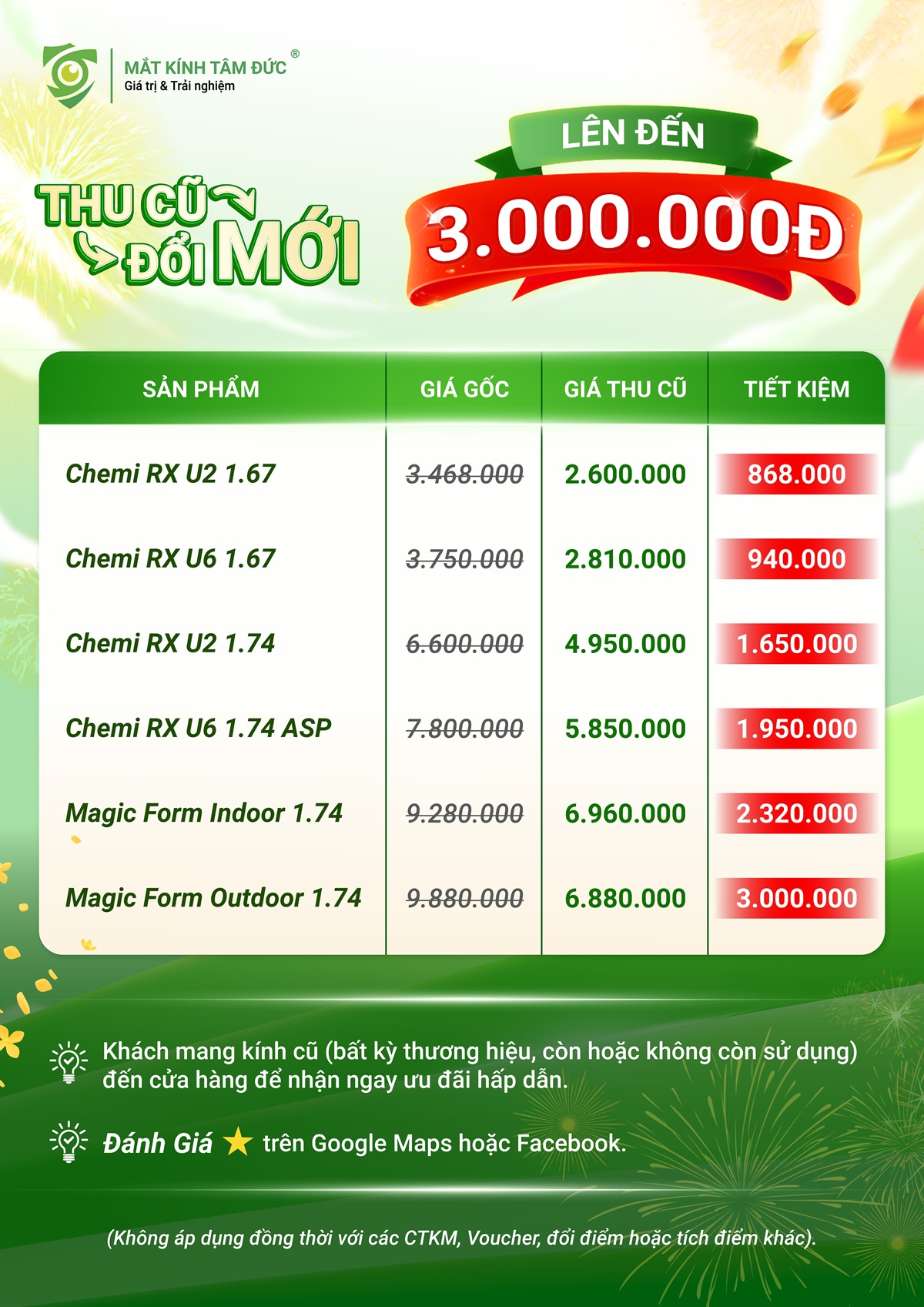 - Chính sách bảo hành Đặc biệt – “Gãy cũng đổi mới” – như một lời cam kết: chúng tôi không chỉ bán kính, chúng tôi mang đến sự an tâm.