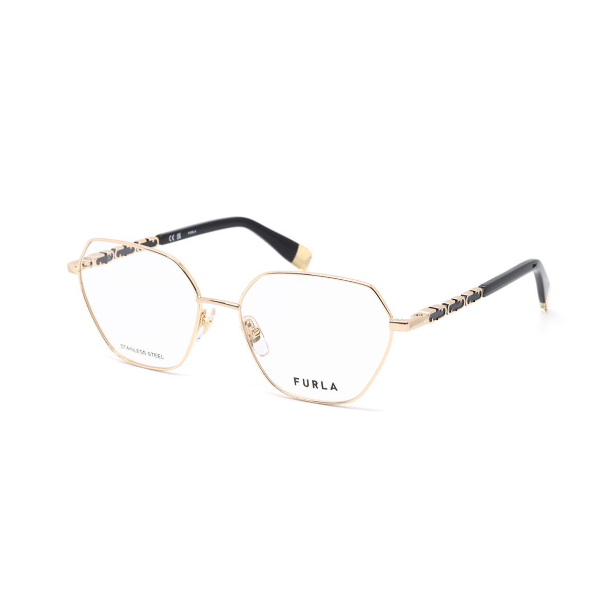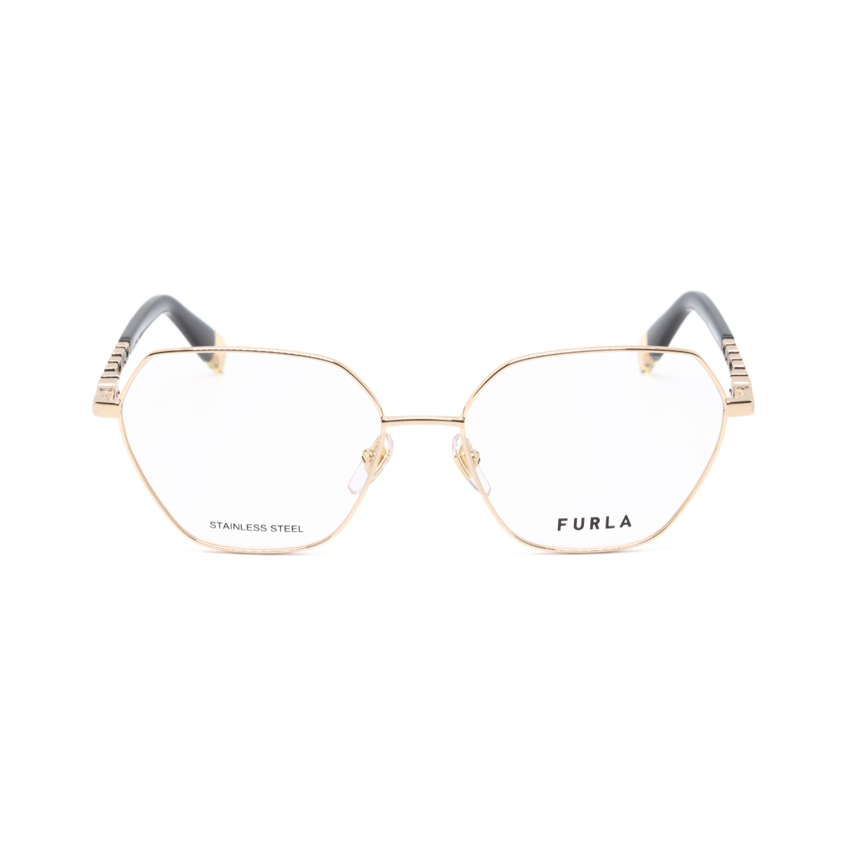 Gọng kính Furla nổi bật với thiết kế tối giản nhưng tinh tế, mang đến vẻ ngoài thanh mảnh, nhẹ nhàng nhưng vẫn có điểm nhấn độc đáo, tạo nên phong cách đẳng cấp và không lỗi thời. Các chi tiết tinh xảo như logo Furla Arch hay bản lề lò xo, cùng với chi tiết kim loại mạ vàng/bạc ở càng kính, khẳng định sự sang trọng và dấu ấn đặc trưng của thương hiệu.